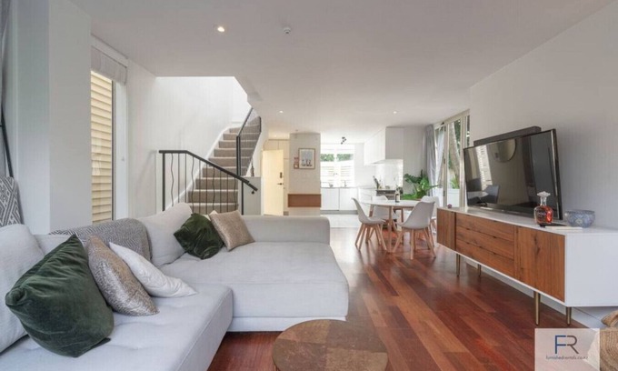 This stylish two storey, end of terrace townhouse is located on a leafy crescent just off Parnell Road. The open plan living space feels bright and airy connecting to multiple outdoor spaces. Relax on the large couch in front of the TV after a day out exploring, and use the well equipped kitchen for nights where you do not wish to eat out at one of the many local restaurants.