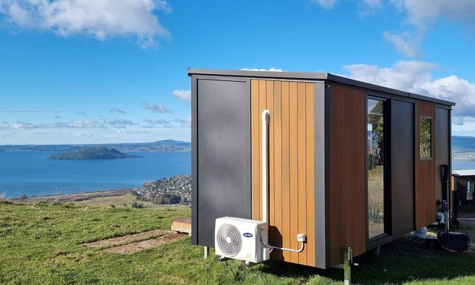 The Aorangi Peak Cabins 9 by Tiny Away is a cozy 139-square-foot tiny home in Rotorua, just an hour's drive from Tauranga. Its unique selling points include breathtaking views and a variety of food options.