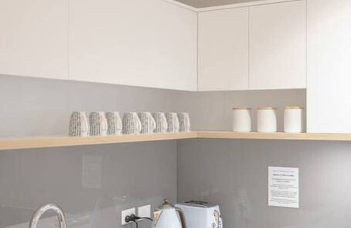 This ground floor apartment is part of a secure building complex and is one one single level. The fully equipped modern kitchen has everything guests will need. There is a separate laundry cupboard for added convenience. The apartment has two spacious queen bedrooms - the master bedroom has an ensuite and plenty of wardrobe space, and the second bedroom includes a handy workspace for those needed to work away from home.