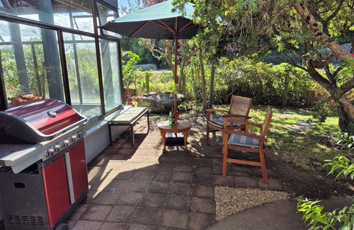 Your accommodation is a basement flat with independent entry from the main house, and off street parking. It is a very private and peaceful place. Feel free to explore and relax in the gardens and help yourself to the fruit trees in the orchard when in season. Usually, the resident ‘wildlife’ will include a doggie very keen for a pat and a bit of attention!