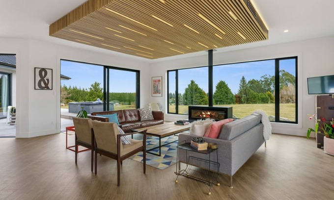 Accommodating up to 10 guests, the Bonshaw Estate is a spacious 4-bedroom, 2-bathroom, single-level retreat designed for relaxation and gathering. Enjoy the open-plan living, dining, and kitchen area, equipped with a DeLonghi Coffee machine and modern amenities. The indoor/outdoor flow leads to a fantastic entertaining area featuring a Weber BBQ and outdoor fireplace, perfect for enjoying sunny summer days and evenings under the stars. For added relaxation, unwind in the spa pool or catch a movie in the dedicated movie room. Spending a day at the snow? There’s no problem getting wet gear dry with the inbuilt drying room. Central heating and cooling ensure year-round comfort.