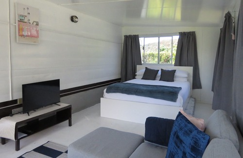 Situated on the beachfront of Coopers Beach is this rustic caravan with annex a perfect place to enjoy the sound of the waves crashing on the beach just a few meters away as you sleep. Your own beach access just off your deck. This is a great kiwi way to holiday and enjoy the best part of summer. An old school caravan with a few comforts of home but still with its rustic caravan charm. A small deck off the side of the caravan to spark up the barbie and crack a cold drink while looking over the bay as the sun goes down. Two double beds to lay your head one in the caravan the other in the annex with a small but comfortable living space to watch tv after a day in the sun. This is definitely the best way to camp. Make memories here in our little piece of paradise.