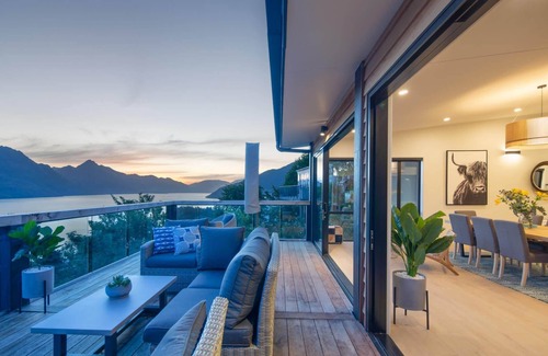 Wake to panoramic views of Lake Wakatipu and The Remarkables, enjoy breakfast on the sun-drenched deck, and unwind in the evening with a glass of Central Otago wine as the mountains glow at sunset. Inside, modern finishes, high-end appliances, and plush furnishings create a warm, inviting atmosphere year-round.