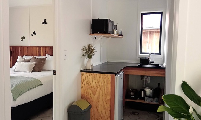 The Hideout offers the perfect escape. Nestled in the heart of native forest, Piwakawaka and Tui cottage makes the perfect retreat for an intimate, romantic break. Or family celebration. Sleeping 4. Here you can relax and unwind, surrounded by nature, without sacrificing the comforts of home. Whether you're a nature enthusiast or simply looking for a chance to escape the hustle and bustle, The Hideout is the perfect place to do it. Relax in our cozy hammock or gather around the barbecue with loved ones in our shared pavilion. You won't want to leave!