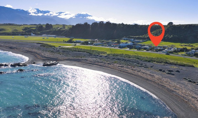 Ultimate location directly across the road from the swimming beach & approx 10 sections away from the Racecourse. Amazing views of the Ocean and the Mountains while relaxing on the front deck. Plenty of room for your boat and vehicles on secure large section. Great walking tracks just up the back around the bay & even a lovely walk into kaikoura township. Public boat ramp just up the road as well as a great cafe/bar also within a short walking distance.