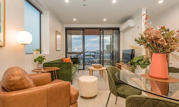 Experience luxury life away from home in this 2-bedroom apartment in the heart of Christchurch. Featuring a luxurious living and dining area, and common areas for visitors.