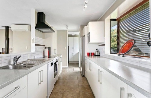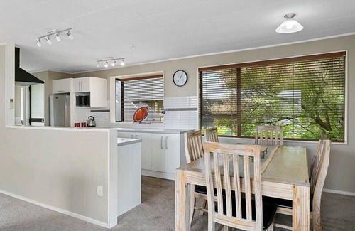 This home has everything you need to have a great stay in Taupō! Three bedrooms have queen-sized beds. The master room has its own ensuite and a large wardrobe. There is a fourth bedroom with two single beds, allowing the house to sleep eight guests in total.