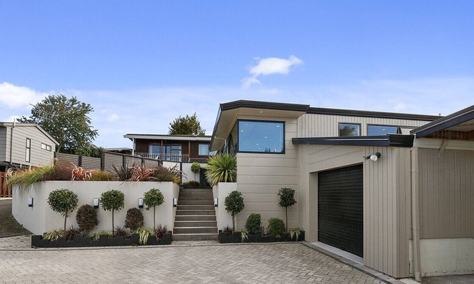 The home is just a 4 minute drive from the lakefront on Lake Taupo, and is also just a 7 minute drive from popular tourist attraction Huka Falls. The home is also walking distance from the Ironman transition and Riverside Park, where a lot of local events are held.