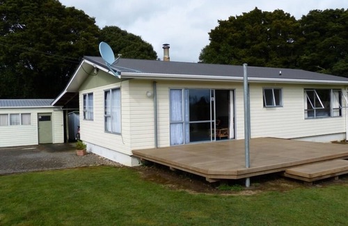 The house is comfortable, private and rustic with an open plan dining and living room which opens out to a large deck with sail. Fireplace and infinity hot water. Shower and separate toilet. Spacious and fully fenced grounds for the kids to run around. Surrounded by native bush and a dairy farm, enjoy a peaceful and relaxing stay. Carport and ample parking.