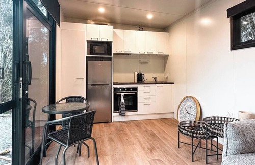 Simple yet stylish, Luna Ridge Hokitika is crafted with adventurers, dreamers, and those seeking a touch of magic in mind. While compact, it is cleverly equipped to make your stay as comfortable as it is memorable. A full-size bathroom includes modern conveniences and laundry facilities, while the functional kitchen provides everything you need to prepare meals after a day of exploring the untamed West Coast.