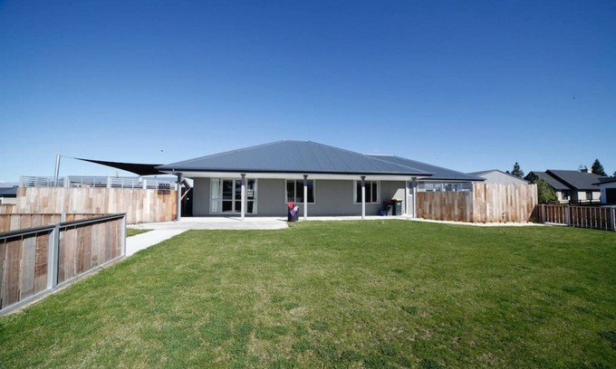 The perfect home to enjoy the beautiful mackenzie and relax newly built 5 bedroom 3 bathroom home with amazing outdoor spaces. A fantastic fully fence front yard with a covered seating area make this an amazing option for large group especially if you have children. There is off street parking on this quiet road and you are only a few minutes walk to the shops, restaurants and cafe's that are in the centre of Twizel.