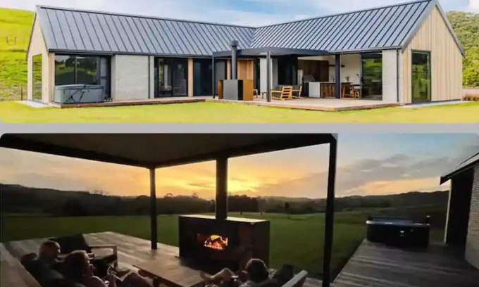 A beautiful and private Bay of Islands retreat, located 7 minutes from Paihia and 5 minutes from the Waitangi Mountain Bike Park. Set in a beautiful elevated rural setting, you can enjoy views of farmland, sheep and cows, and fillet your own freshly caught fish! Have a hearty BBQ in the outdoor dining area and fireplace along with relaxing in a Vortex spa. With plenty of parking for trailer boats of any size, this property has it all to make it an unforgettable Bay of Islands holiday!
