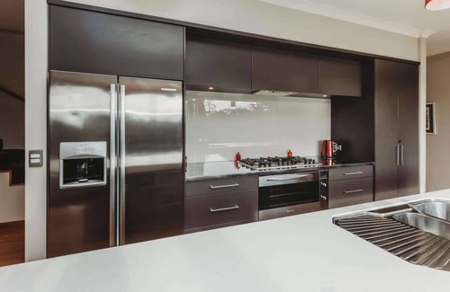 Contemporary in design with a river and rural backdrop, the house features mid-century touches with warm timber and a suspended ceiling providing a great sense of space. Two well-appointed relaxed and comfortable living areas open beautifully to the outdoors. After a day out exploring, curl up and listen to the calming river flowing. A fully equipped kitchen with high-end appliances makes cooking a pleasure.