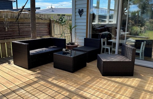 The property has been remodelled with love and charm and is full of homely touches matched with a modern boutique kiwi beachfront bungalow. There is many a nook to enjoy through the house, a cosy lounge and open plan entertaining in the modern newly installed kitchen and dining.