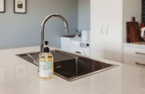 This sustainable lifestyle property features solar power and a focus on conservation, making it an eco-friendly choice for your holiday. The open-plan living space is designed to bring the outdoors in, with doors that open onto a deck, allowing you to enjoy the fresh air. The well-equipped modern kitchen includes a Nespresso coffee machine, perfect for your morning brew. After a day of exploring, cozy up by the fireplace with a good book, as there is no TV to distract you from the peace and quiet. Unlimited WiFi is available for those who need to stay connected for work.