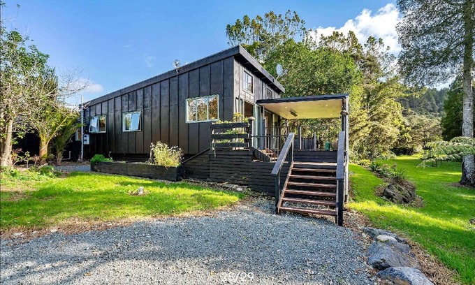 Peaceful space with room to relax on spacious covered deck. Sitting amongst native trees listening to native bird life and only 12 minutes from Mangawhai township.