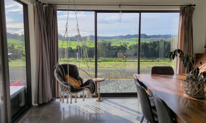 Just 8 mins to the supermarket and 20 to beautiful beaches, this retreat offers the perfect balance of nature and convenience. Set on 1.5 acres with stunning views, this unique shed home features open-plan living, a spacious bedroom, 3 cozy cabins and a huge lawn, ideal for families or groups. Unwind outdoors with a BBQ, fire pit, and an outdoor bath. Explore the beaches and nearby walking tracks. A comfortable, nature-filled escape that’s still close to everything you need.